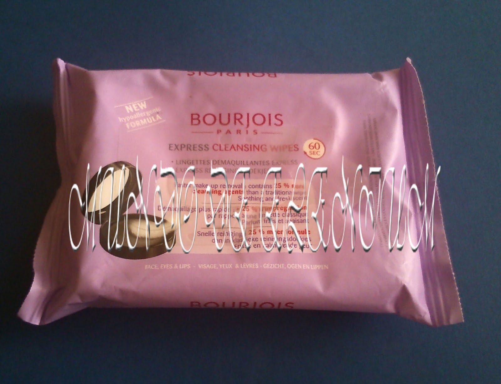 Paso a comentaros un poco los diferentes productos. En primer lugar os hablo de las toallitas desmaquillantes de Bourjois Express Cleansing Wipes: Esta toallistas me tienen enamorada, son super suaves, muy húmedas y quitan estupendamente el maquillaje. Traen 25 toallitas y el precio que tienen depende de donde las compreís. Donde más barato Primor.