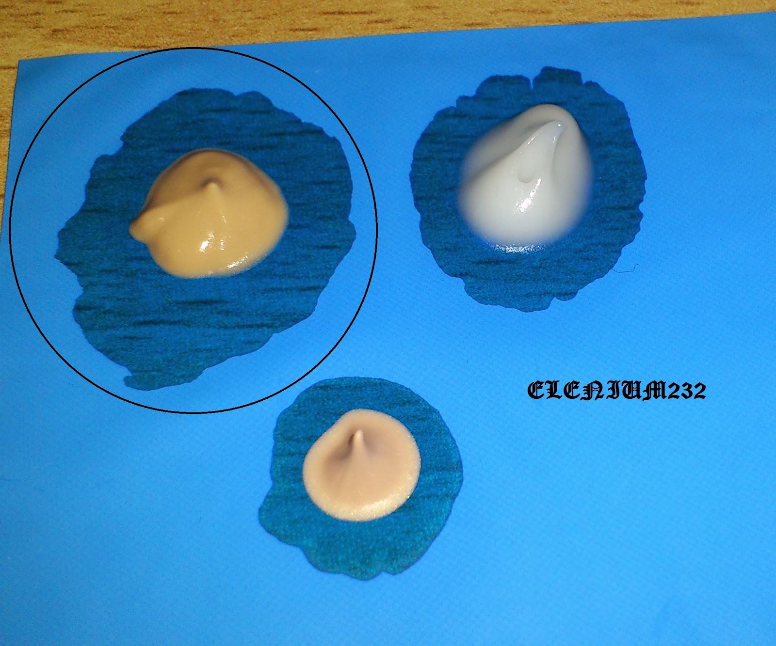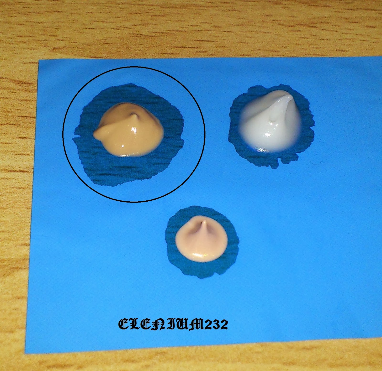 Como veis en esta primera fota al minuto o dos de hechar el producto ya aparece cerco de grasa al rededor ( es la que señalo con un circulo) las otras prebases tardan algo más (una es la de Rimmel London Fix& Perfect y Catrice Prime and Fine).